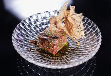 Фуагра с карамелизованным яблоком и свежими ягодами